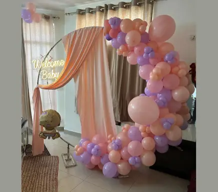 Celebrate your baby's naming ceremony with our beautiful balloon decorations! From elegant arches to customized themes, we create a joyful and welcoming ambiance. Book now for a memorable celebration!