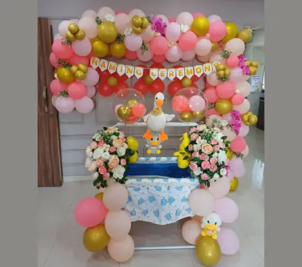 Celebrate your baby's naming ceremony with our beautiful balloon decorations! From elegant arches to customized themes, we create a joyful and welcoming ambiance. Book now for a memorable celebration!